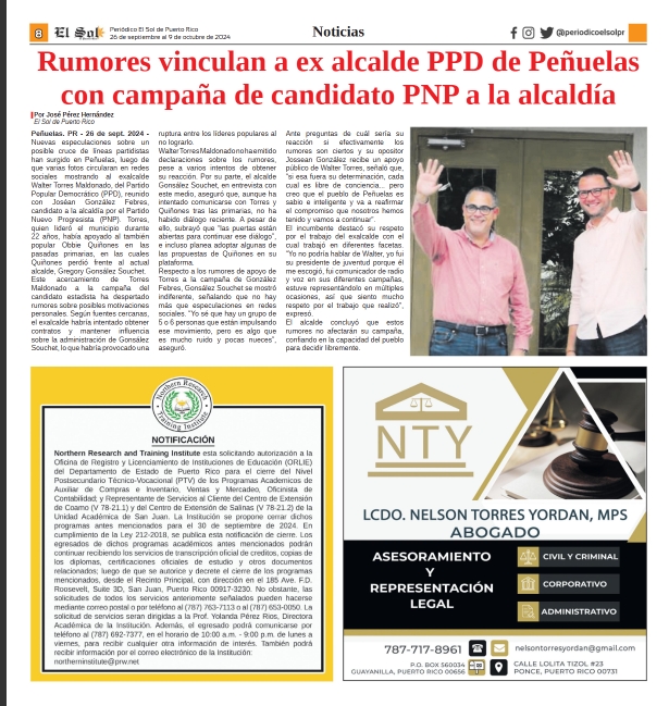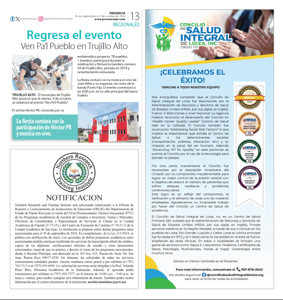 El Northern Research and Training Institute anuncia el cierre de su oficina en Fajardo, lo que conlleva la finalización de servicios en dicha localidad. Esta medida ha sido tomada en conjunto con la Oficina de Reglamentación y Licenciamiento de Instituciones de Salud y el Departamento de Salud de Puerto Rico. El cierre oficial está programado para el 1 de octubre de 2024.